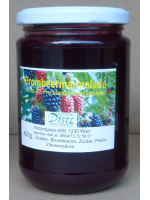 Selbstgemachte Marmelade von Brombeeren aus dem eigenen Garten. Passiert oder mit Fruchtstücken (auch Kerne) verfügbar.