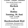 1.6.2013: Ein besonderer Anlass für Freunde des Wienerliedes ist der 30.Juni 2013. An diesem Tag findet von 11 bis etwa 14 Uhr ein Wienerlied Frühschoppen mit Peter Havlicek und Karl Hodina statt. Einlass ist wieder ab 10:30 Uhr, der Unkostenbeitrag beträgt 10 Euro pro Person. Die Veranstaltung findet bei Schönwetter im Garten, ansonst im Lokal statt. Eine Platzreservierung ist unbedingt erforderlich und wird bis längstens 10:45 Uhr garantiert.